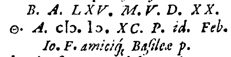 &THETA;· A. M.D. XC. P. id. Feb. Io. F. amici&abque; Basileae p. |
