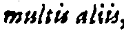multie aliis | multis aliis | NOTE: the first "s" is only slightly less distinct than the second one, and really doesn't resemble an "e"; but it is blotted enough, and the type is small enough, that we let this pass as excusable, but doubtfully. |