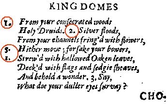A1. There is no perfect way within the DTD to do this, but the easiest is to regard "KINGDOMES." and the following number as forming a single <SPEAKER> description. (If this fails, try using <STAGE>, which can appear almost anywhere).